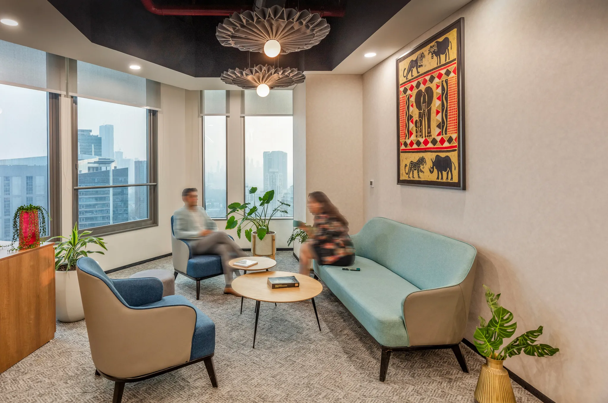 ANJ Group partnered with The Canvas to deliver a 26,000 sq. ft. workplace for JSA, one of India's premier law firms. Designed to reflect legal excellence while embracing modern agility, space blends professionalism with innozvation. A sophisticated palette of deep blues, crisp whites, marble, and warm wood accents creates an atmosphere of trust and prestige. Acoustic ceilings, soundproof meeting rooms, and switchable glass technology enhance privacy, while daylight-optimized layouts and ergonomic workstations support comfort and productivity. Thoughtful leisure areas and sustainable design practices further enrich the experience, making JSA's Mumbai office a benchmark in contemporary legal workplaces.