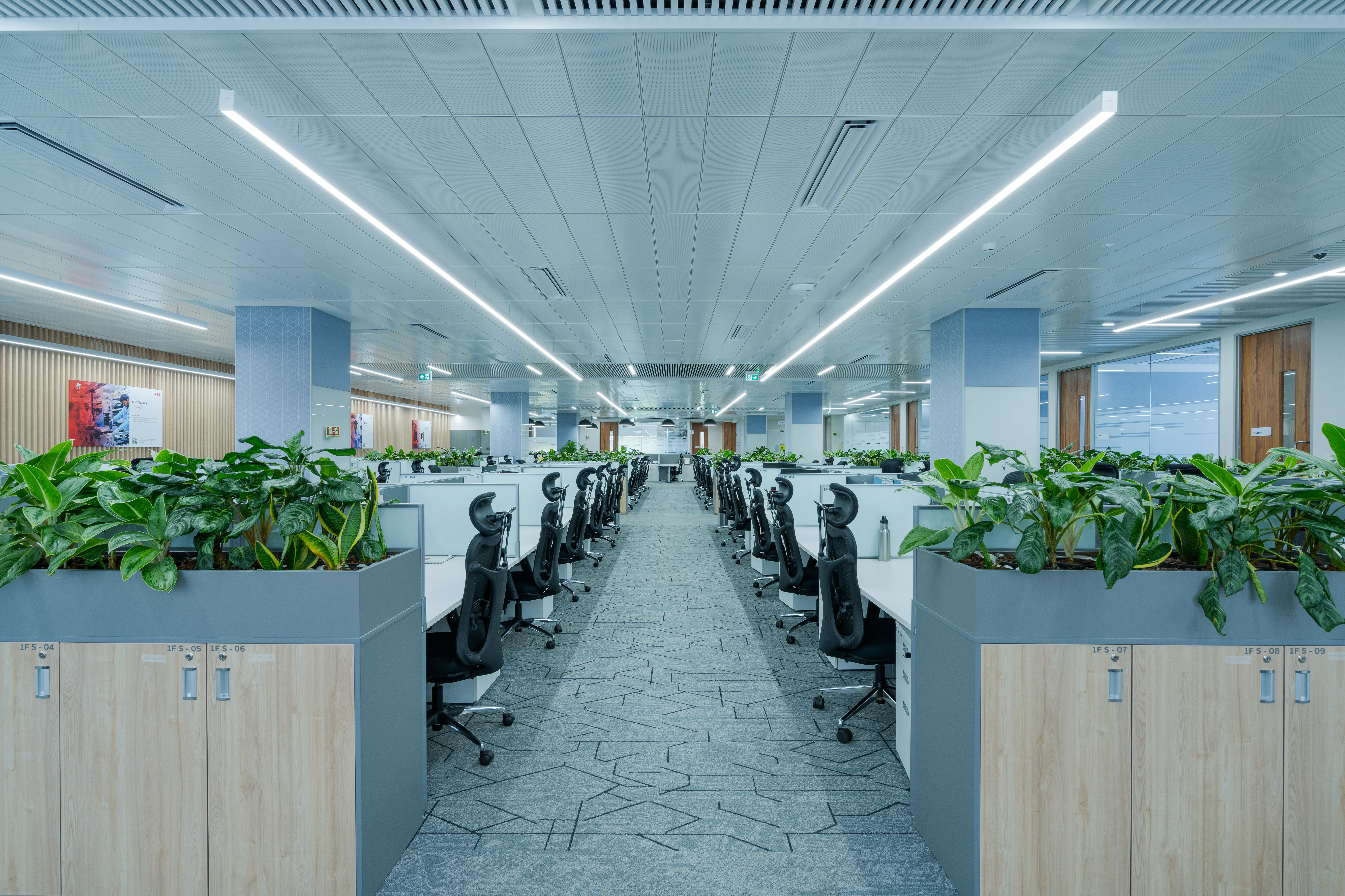 The design emphasizes natural light, biophilic elements, and modern finishes to create a vibrant yet professional ambiance. From welcoming reception areas to executive zones and breakout spaces, every detail was carefully executed to balance functionality with aesthetics. The result is a high-performance workspace that supports ABB's global vision while catering to the needs of its dynamic workforce in India.