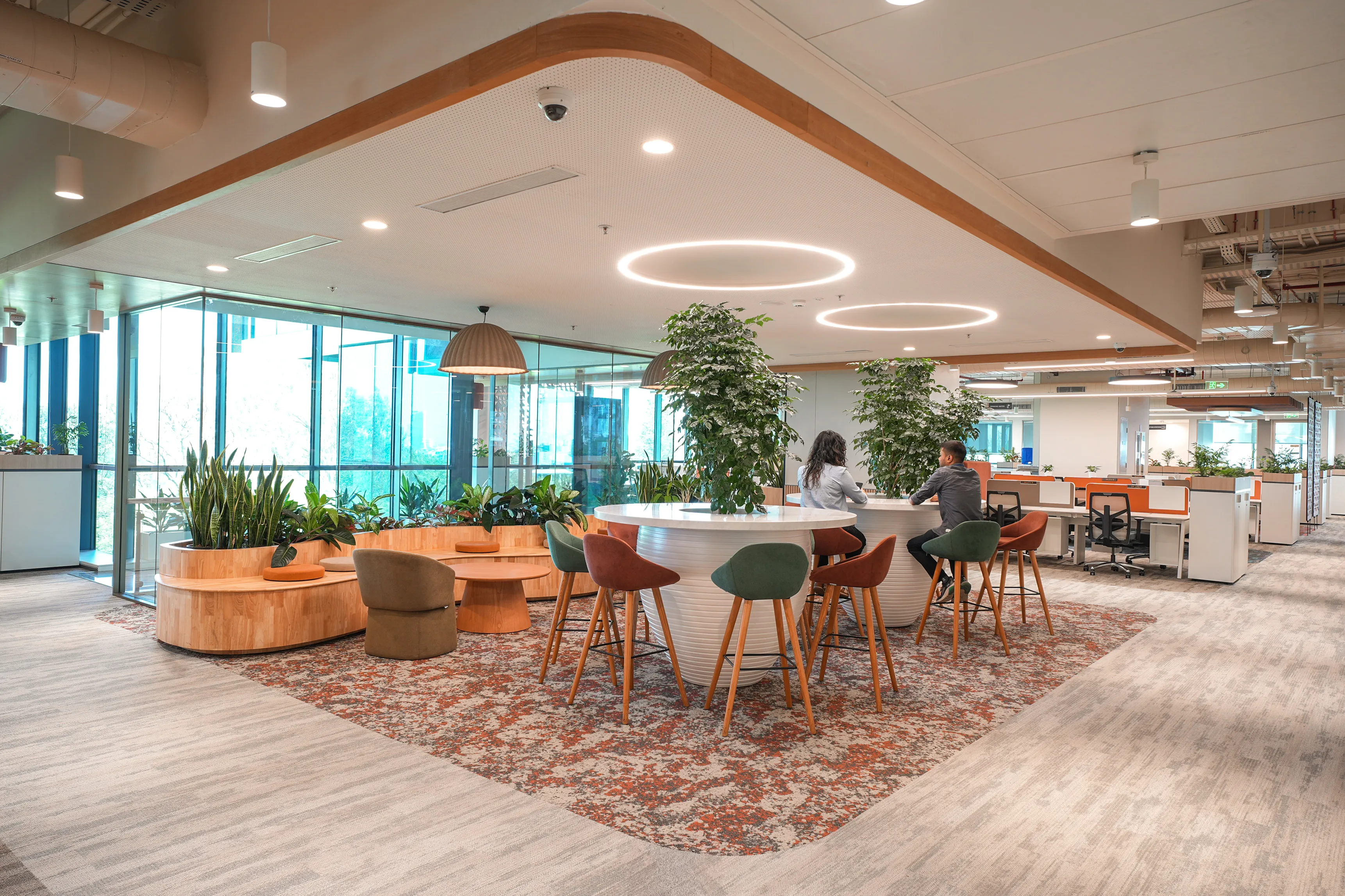 ANJ Group delivered a 39,000 sq. ft. workplace for EY in Bengaluru, with its main façade overlooking Cubbon Park. The office was envisioned as a Town Square a collaborative hub designed to foster connection, engagement, and innovation. Visitors are welcomed from the lift lobby with sweeping views across the workspace, reinforcing openness and transparency. Natural light reaches every workstation, creating a vibrant, uplifting environment, while authentic biophilia only real plants, enhances wellness and connection to nature. A dedicated client zone, Business Bay, combines marble, veneer, and plush furnishings to add hospitality-inspired warmth. With earthy tones of rust and green, the workplace blends natural finishes with modern functionality, embodying EY's culture of excellence.